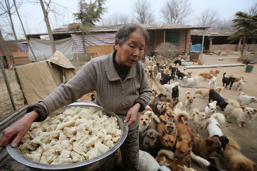 «Wang Yanfang», una anciana del lugar, decidió que ya era hora de cambiar esa situación y decidió fundar en 2009 un refugio con el objetivo de poder alimentar a estos animales y poder darles una oportunidad para vivir.