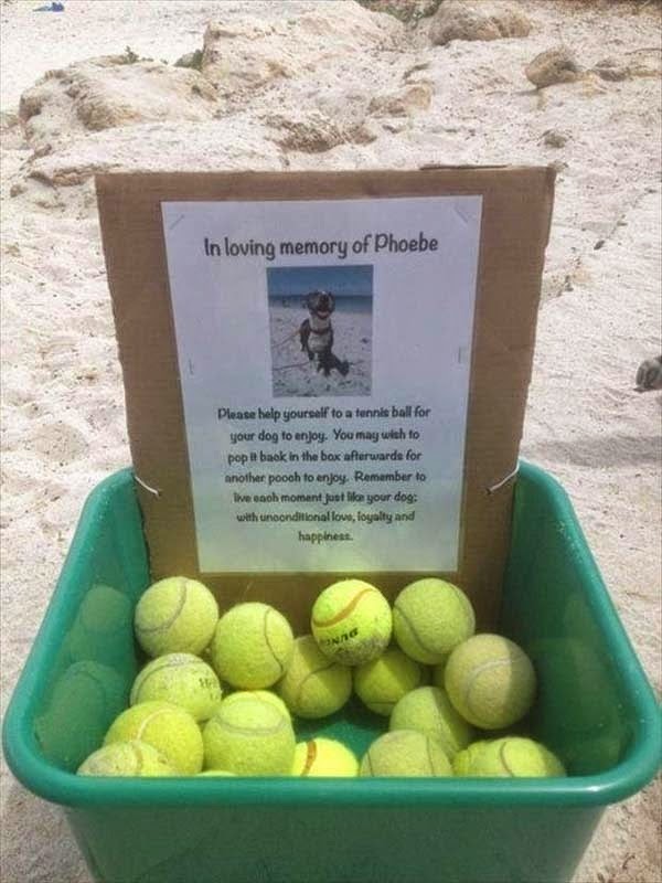 7) El dueño de este perro que ya falleció ofrece pelotas de tenis a todo aquel propietario de perro que acude a la playa a pasear. Jugar con nuestro perro es lo mejor que podemos hacer y este hombre decidió homenajear a su perro de esta manera: haciendo felices a otros perros.