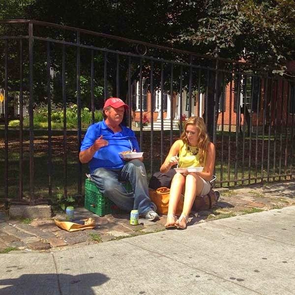 9) Esta chica acude todos los miércoles a comer junto a este vagabundo. Lleva comida para los dos.