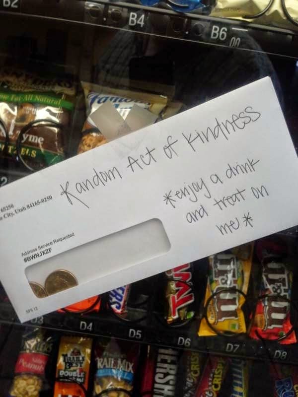 10) Alguna persona decidió hacer un acto de amabilidad al azar. Pegó este sobre con unas monedas en una máquina dispensadora de bollería.