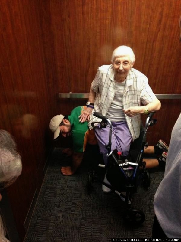 1) La señora estaba muy cansada y dolorida. Este estudiante se ofreció a hacer de silla.