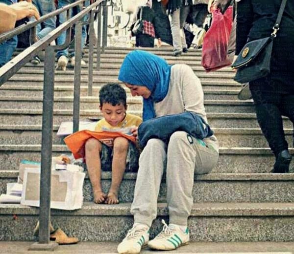 2) Esta chica se ofreció a enseñarle a escribir a este chico que ejerce la mendicidad en Egipto.