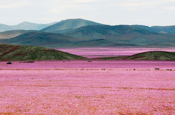 Esta primavera (octubre, noviembre en el Hemisferio Sur) se han dado grandes precipitaciones, cosa muy extraña en el lugar y que muchos atribuyen al cambio climático. Lo sorprendente de este caso es que de una tierra seca propia de un desierto han florecido millones de flores violetas.