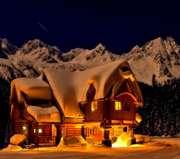 2) Una cabaña cubierta de nieve brilla por la noche en Fernie, Columbia Británica. Fuente de la imagen: Instagram