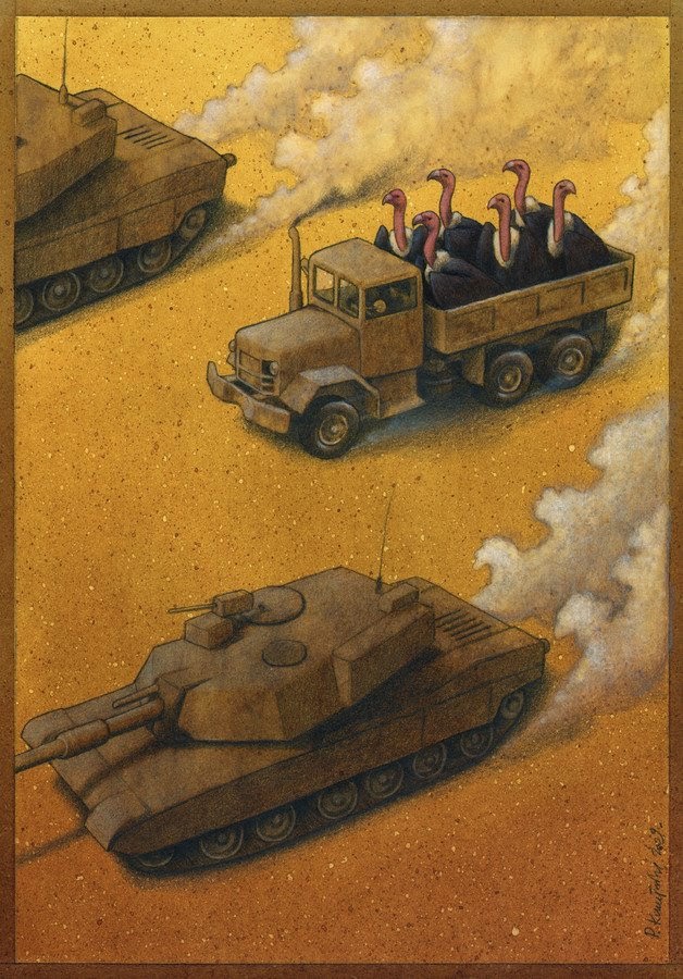 15) Tras las guerras están los buitres dispuestos a tomar los recursos del vencido.