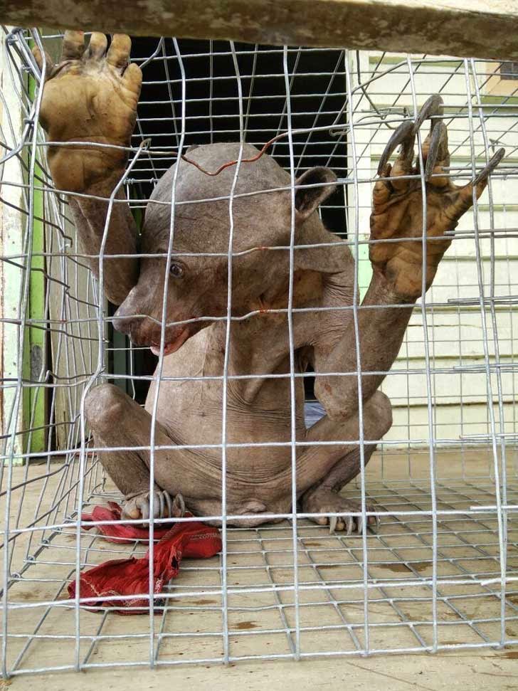 Se trataba de una osa malaya gravemente enferma. Antes de que fuera brutalmente golpeada por los habitantes del lugar, las autoridades sanitarias se hicieron cargo de ella.